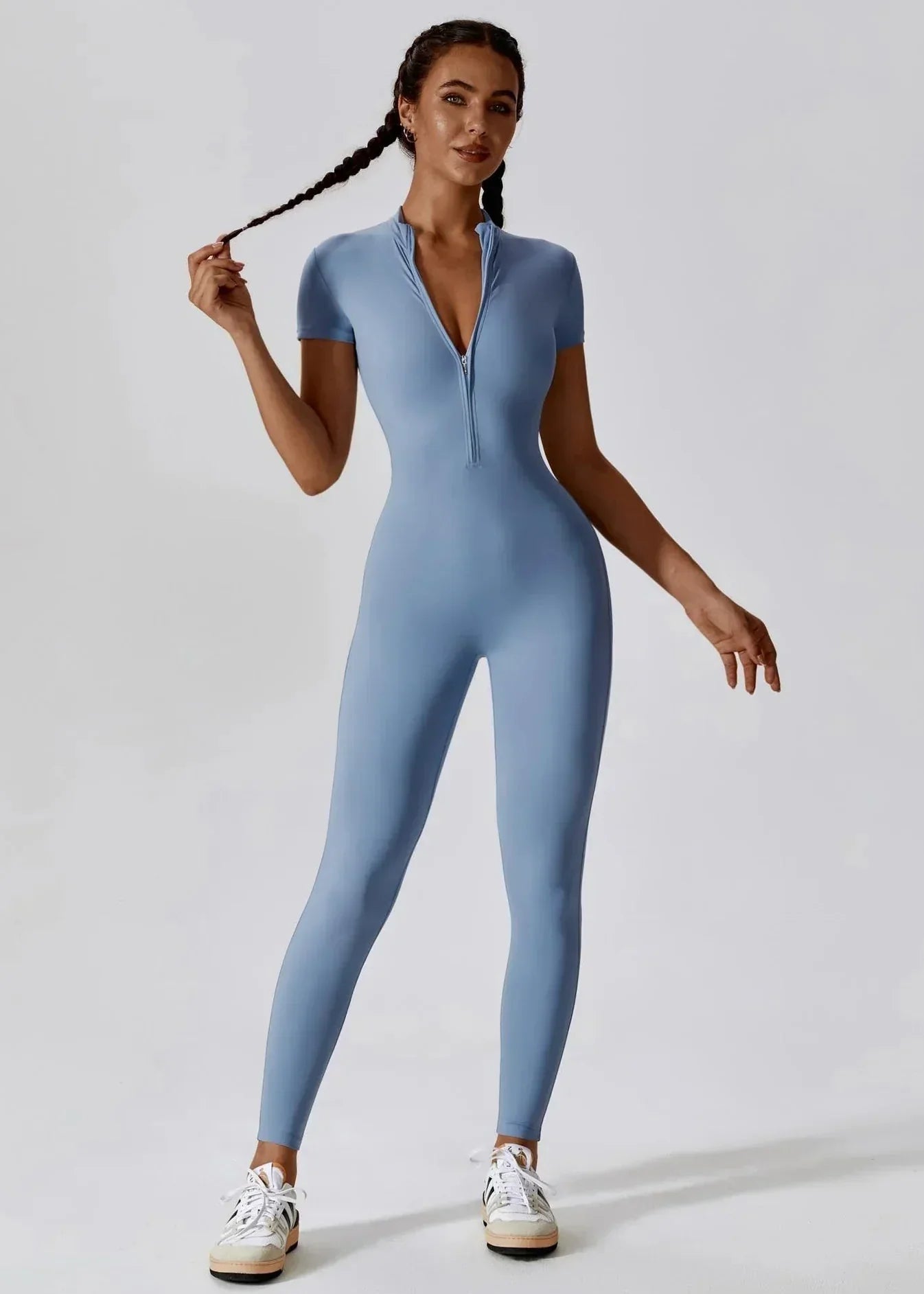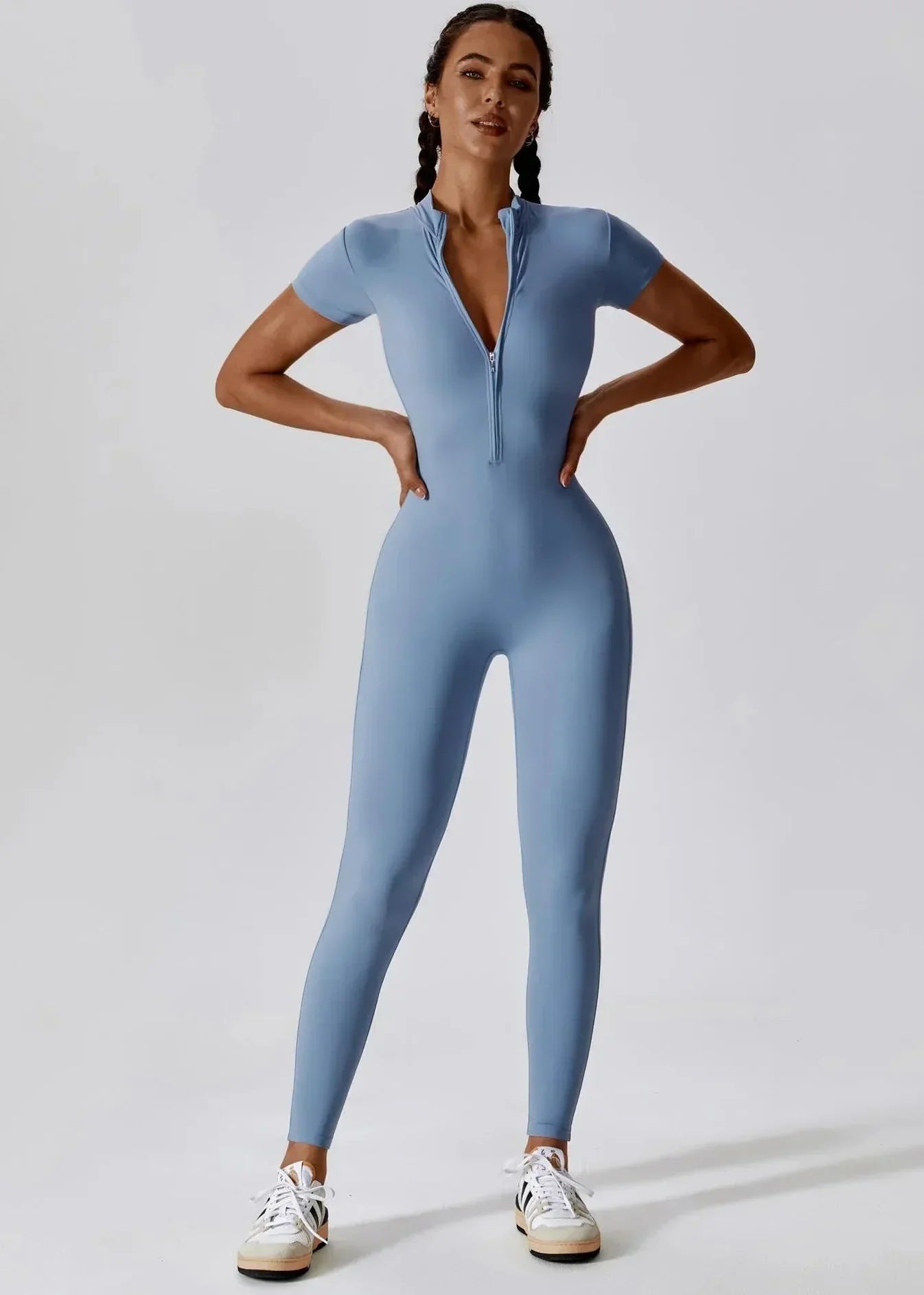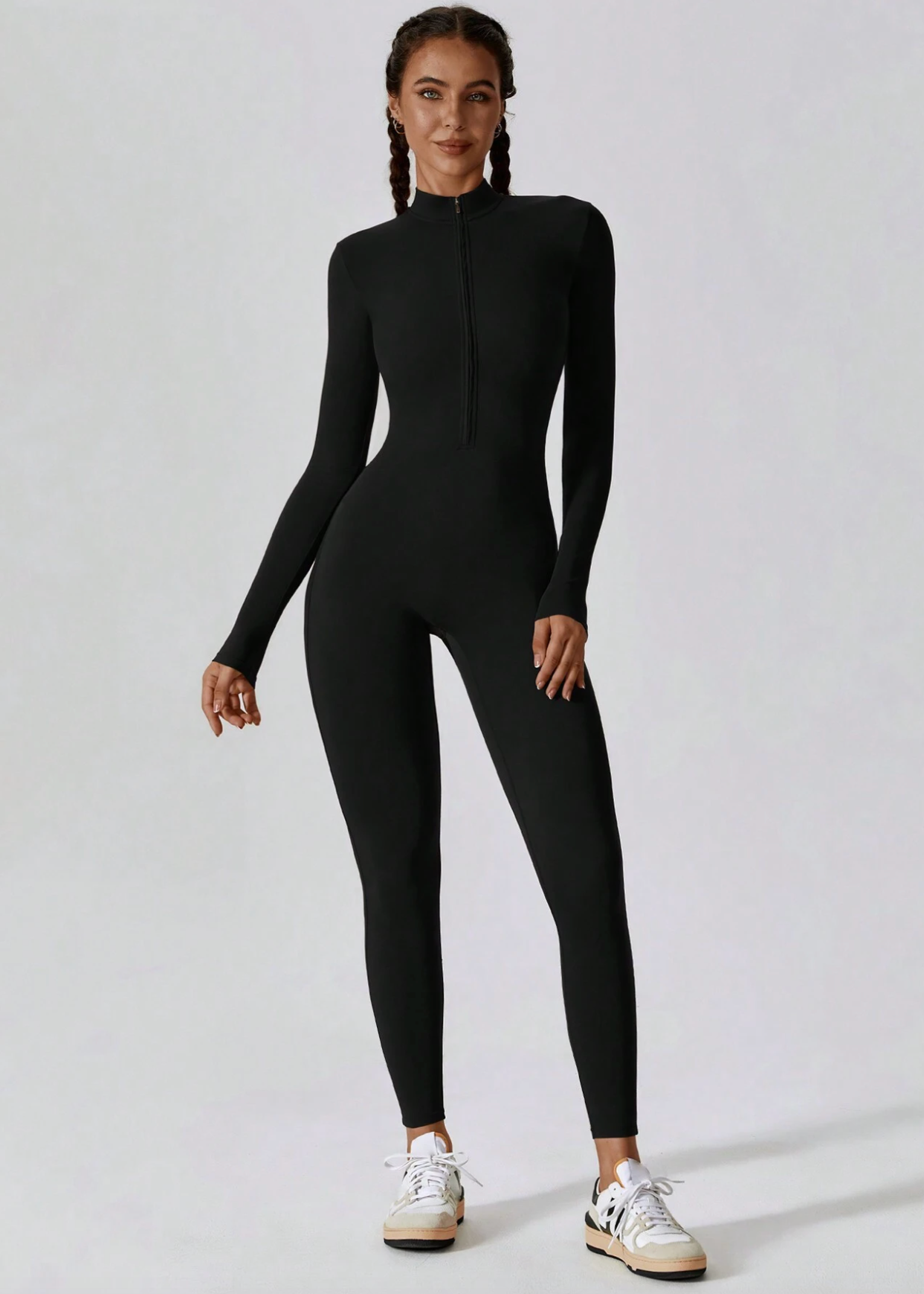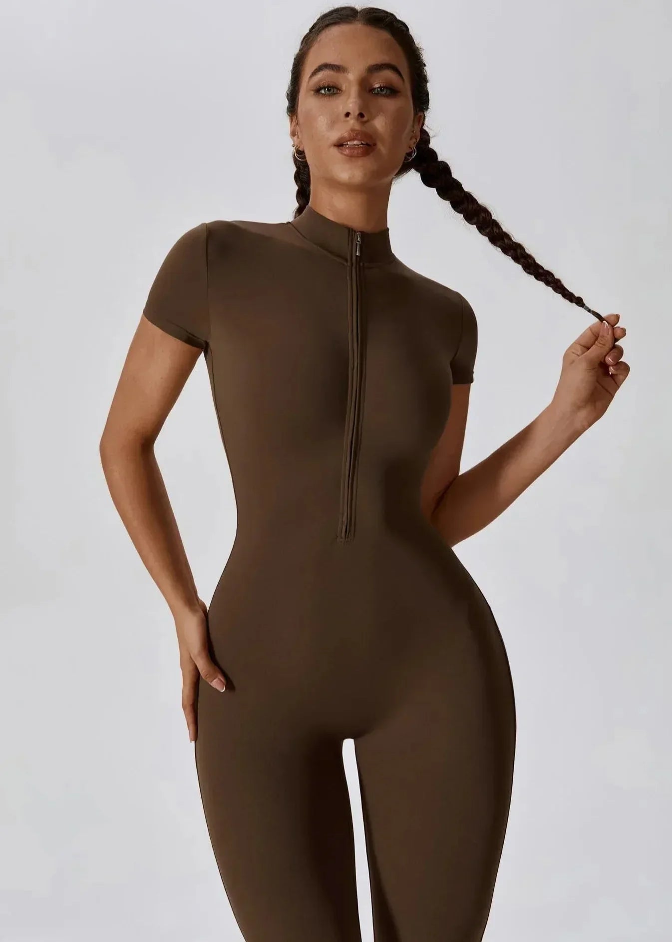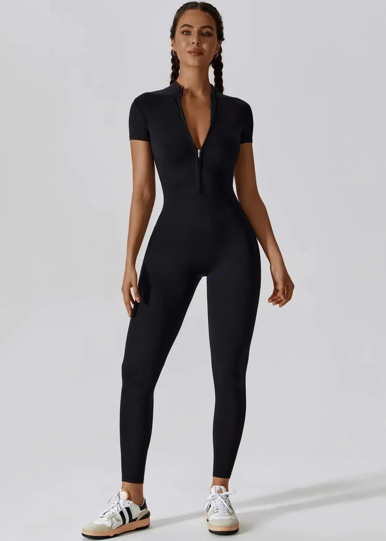 Un indispensable de la garde-robe moderne, cette combinaison une pièce incarne parfaitement l’équilibre entre style et confort. Sa coupe ajustée met en valeur les courbes avec élégance, tandis que son zip frontal pratique et séduisant apporte une touche d’originalité.